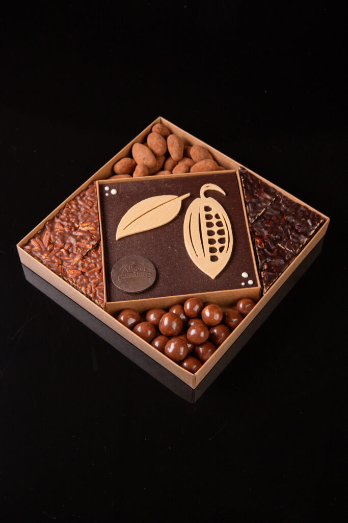 Chez Albert Chocolatier, nous mettons notre 𝐬𝐚𝐯𝐨𝐢𝐫-𝐟𝐚𝐢𝐫𝐞 𝐞𝐱𝐜𝐞𝐩𝐭𝐢𝐨𝐧𝐧𝐞𝐥 et notre 𝐩𝐚𝐬𝐬𝐢𝐨𝐧 pour le 𝐜𝐡𝐨𝐜𝐨𝐥𝐚𝐭 au service de vos envies. En tant que 𝐦𝐚𝐢̂𝐭𝐫𝐞 𝐚𝐫𝐭𝐢𝐬𝐚𝐧, Albert Chocolatier étudie et conçoit des 𝐜𝐡𝐨𝐜𝐨𝐥𝐚𝐭𝐬 𝐩𝐞𝐫𝐬𝐨𝐧𝐧𝐚𝐥𝐢𝐬𝐞́𝐬 sur-mesure pour satisfaire les exigences les plus élevées. Que vous souhaitiez offrir des 𝐜𝐡𝐨𝐜𝐨𝐥𝐚𝐭𝐬 uniques ou créer des douceurs 𝐩𝐞𝐫𝐬𝐨𝐧𝐧𝐚𝐥𝐢𝐬𝐞́𝐞𝐬 pour une occasion spéciale, nous sommes là pour donner vie à vos idées.