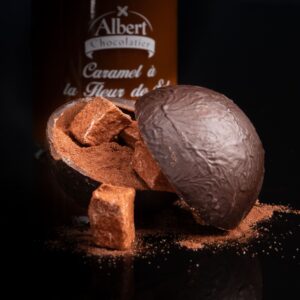 Notre caramel à l’ancienne, cuit au chaudron en cuivre, est composé d’une pointe de fleur de sel de Guérande, un miel local de colza (Miel du Bocage), un beurre frais et une touche de crème.